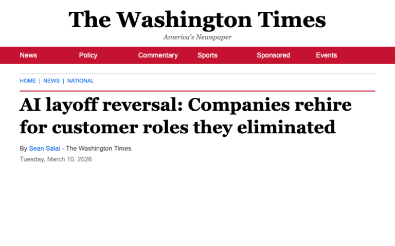 IgniteTech CEO Eric Vaughan quoted in the Washington Times on the AI layoff reversal trend, as companies rehire